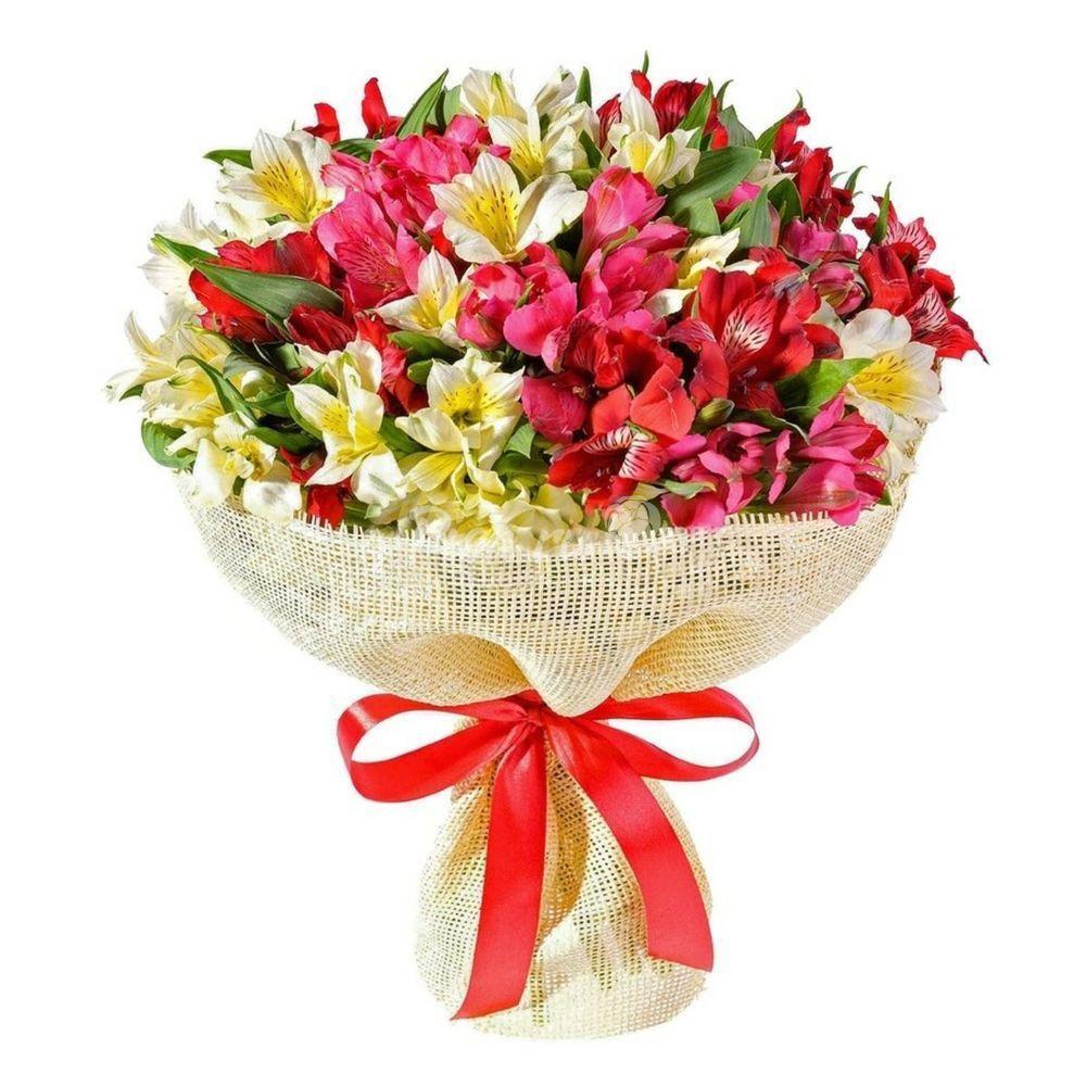 Альстромерия – 15 шт.Упаковка – 1 шт.Лента атласная – 1 шт.