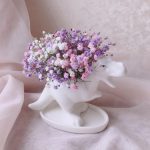 Керамическое кашпо – 1 шт.Губка флористическая – 1 шт.гипсофила радужная – 3 шт.