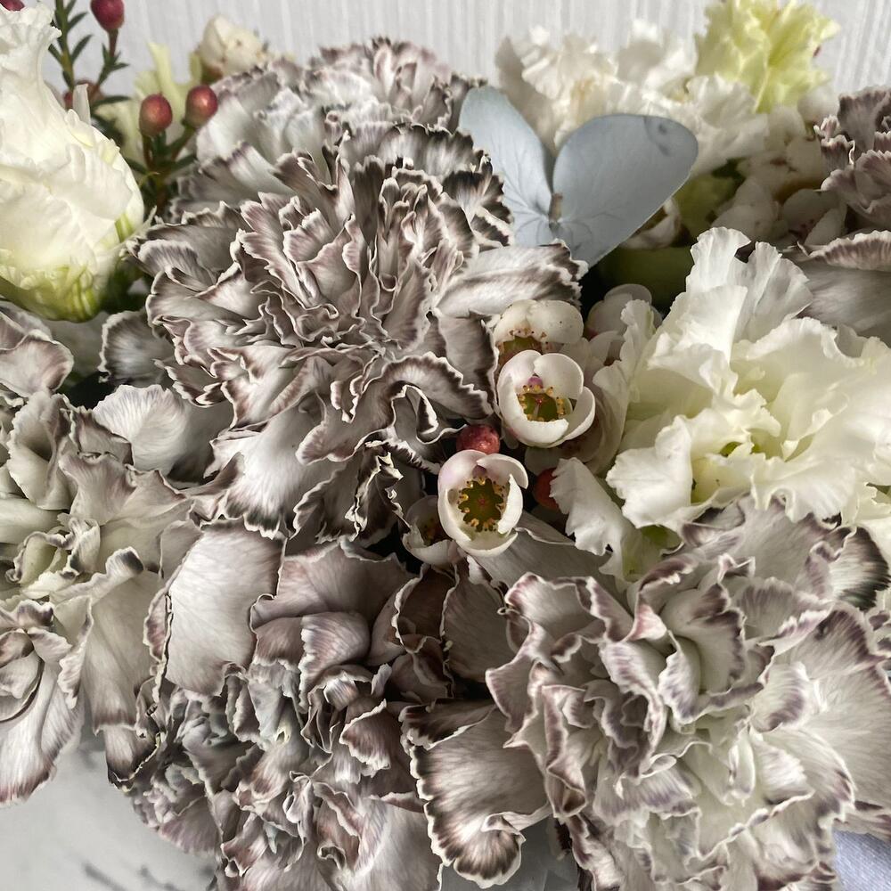 Ваксфлауэр – 1 шт.Эустома – 1 шт.Диантус – 8 шт.