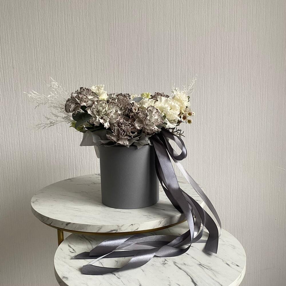 Букет из диантусов в шляпной коробке