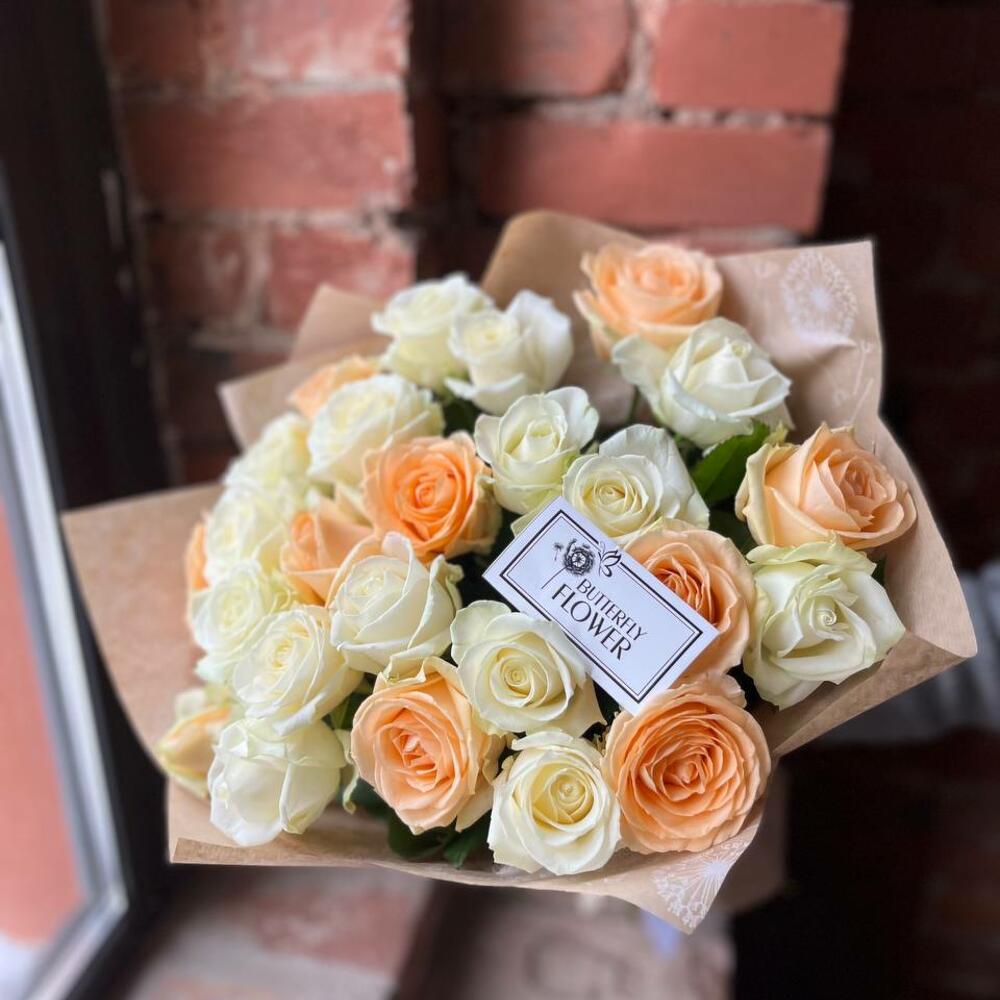 Букет из 25 роз в крафтовой упаковке “Антарктика”