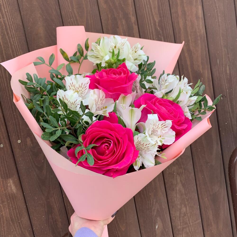 Букет из альстромерий,роз, зелени Маркиза