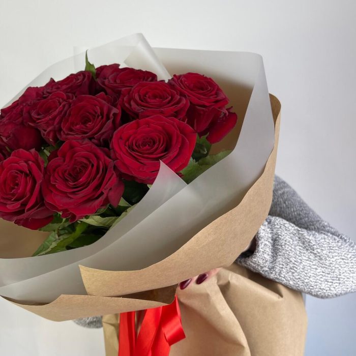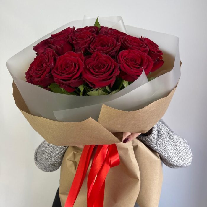 Букет красных роз в крафт