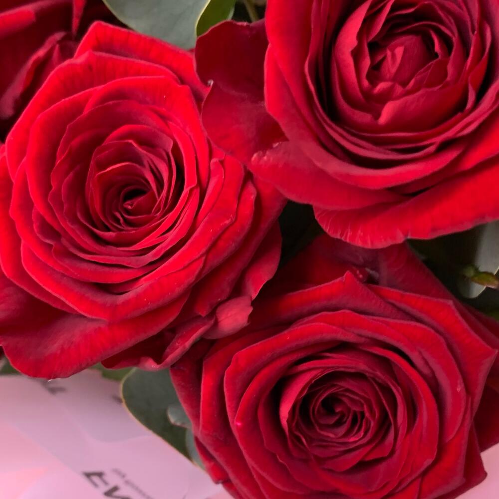 Монобукет из красных роз с эвкалиптом