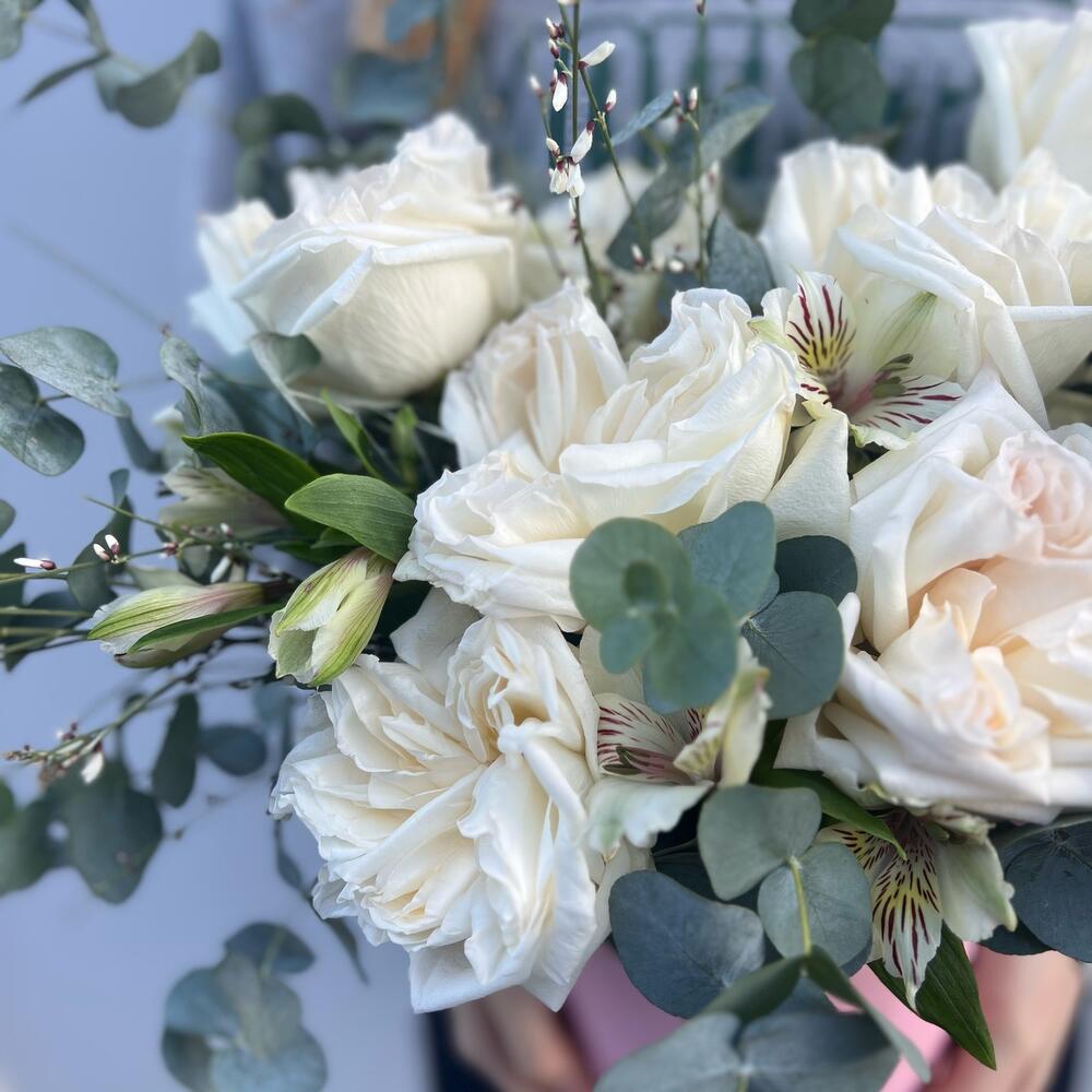 “Эвкалиптическая роскошь” гортензия и пионовидная кустовая роза